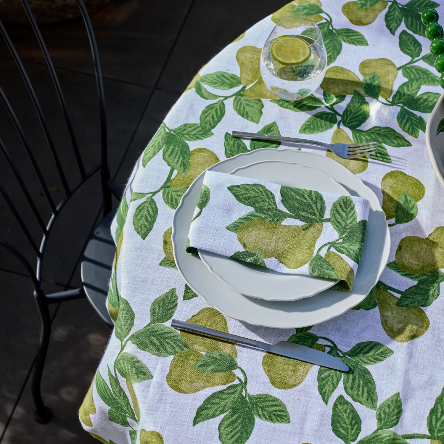 Bring a coordinated finish to your table setting with the Pear Tree Green Napkin Set of 4. Featuring the signature pear and leaf print, these napkins add a fresh, botanical feel to everyday meals and entertaining alike.